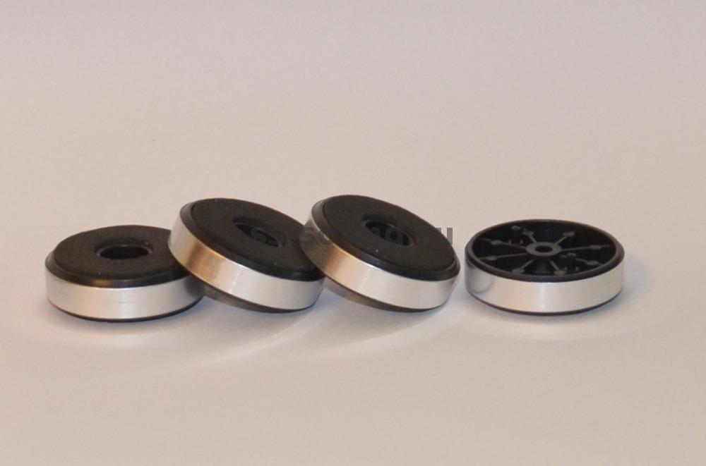 Ножки пластмассовые в алюминиевом профиле. Легко крепятся и очень хорошо держат аппарат.